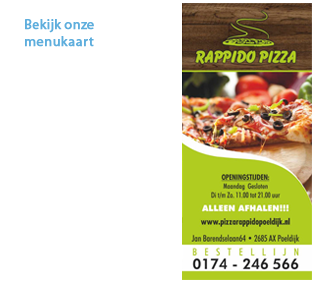 Klik op menukaart om direct te zien wat je bij ons kunt bestellen! Of bel ons direct op het nummer 0174-246 566